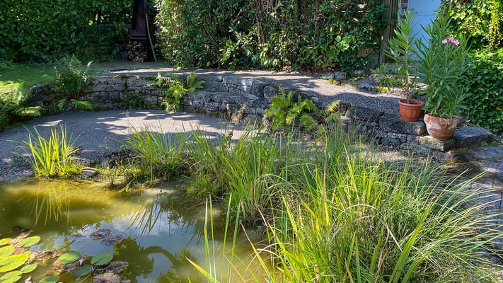 Pflanzen- und insektenreiche Ruderalflächen, einheimische Sträucher für Vögel und Schmetterlinge, Totholz und Asthaufen als ökologische Nischen für Amphibien bilden so ein Stück Naturparadies in Deinem eigenen Zuhause.